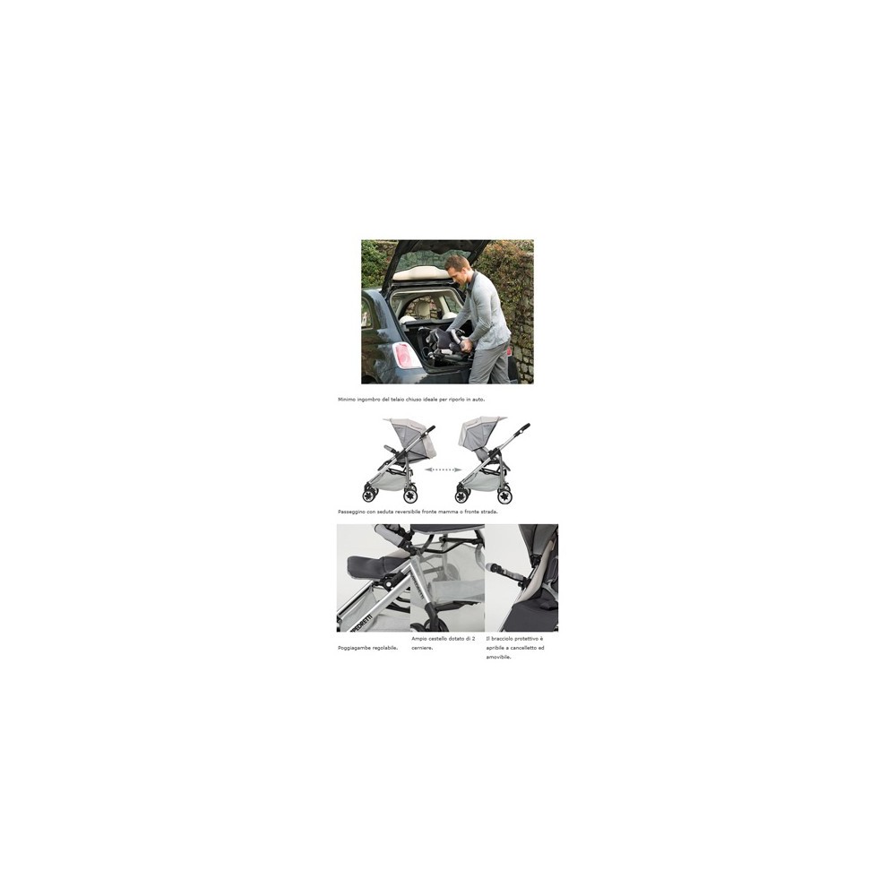 -Seduta reversibile, fronte strada o fronte mamma con poggia gambe regolabile, schienale regolabile in multi posizioni, cintura di sicurezza a 5 punti, bracciolo di protezione, maniglione regolabile in tre posizioni.