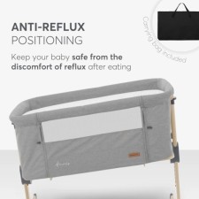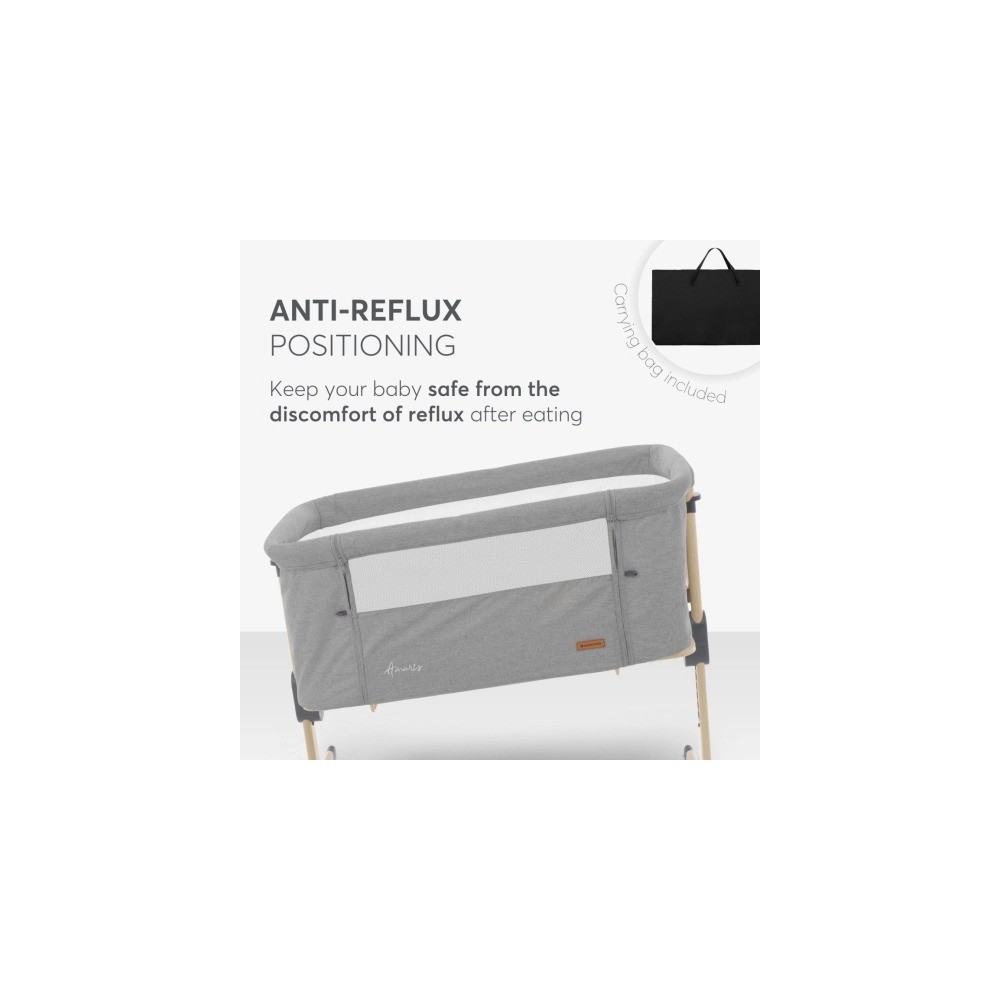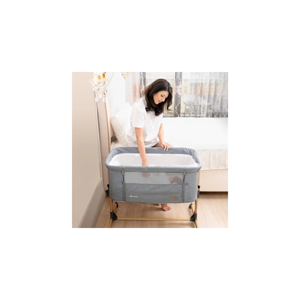 Progettata per neonati fino a 6 mesi, la culla accanto al letto AMARIS offre un ambiente sicuro e accogliente proprio accanto al letto. Permette ai genitori di stare vicino al loro bambino durante la notte, facilitando l'allattamento, il conforto e il legame senza alzarsi.